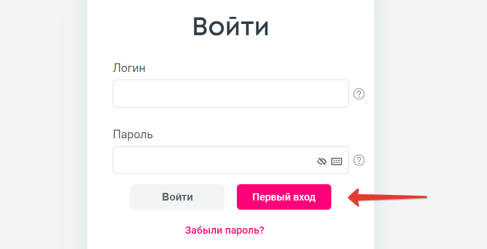 Предпринимателю или представителю юридического лица необходимо открыть форму входа в ЛК и в ней нажать на красную кнопку «Первый вход». Обратите внимание, регистрация доступна, только если у клиента с банком уже заключен договор на обслуживание.