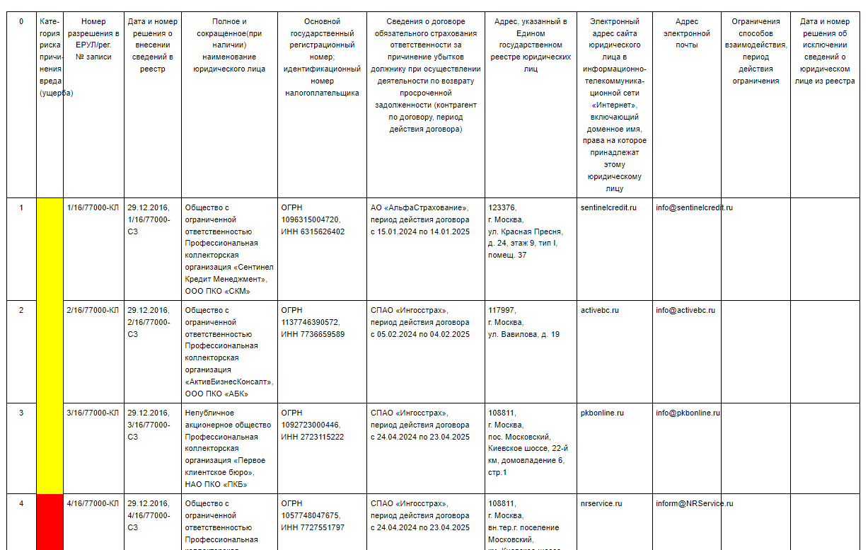 Так выглядит реестр профессиональных коллекторских организаций