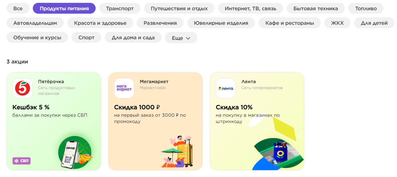 В ЛК можно увидеть предложения партнеров. За покупки у них, оплаченные картой Мир, держатель получает кешбэк или скидки. К программе можно подключить несколько карт любых банков РФ.