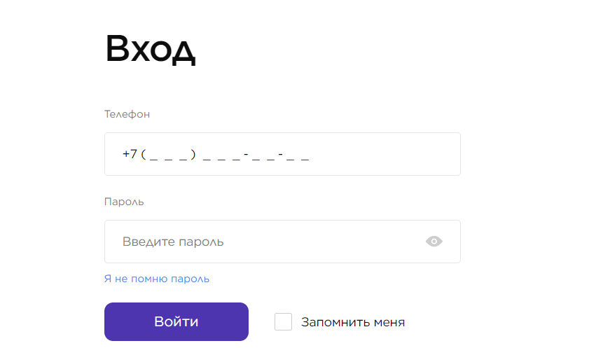 Откроется форма, в которой нужно указать свой мобильный телефон и придуманный при регистрации пароль.