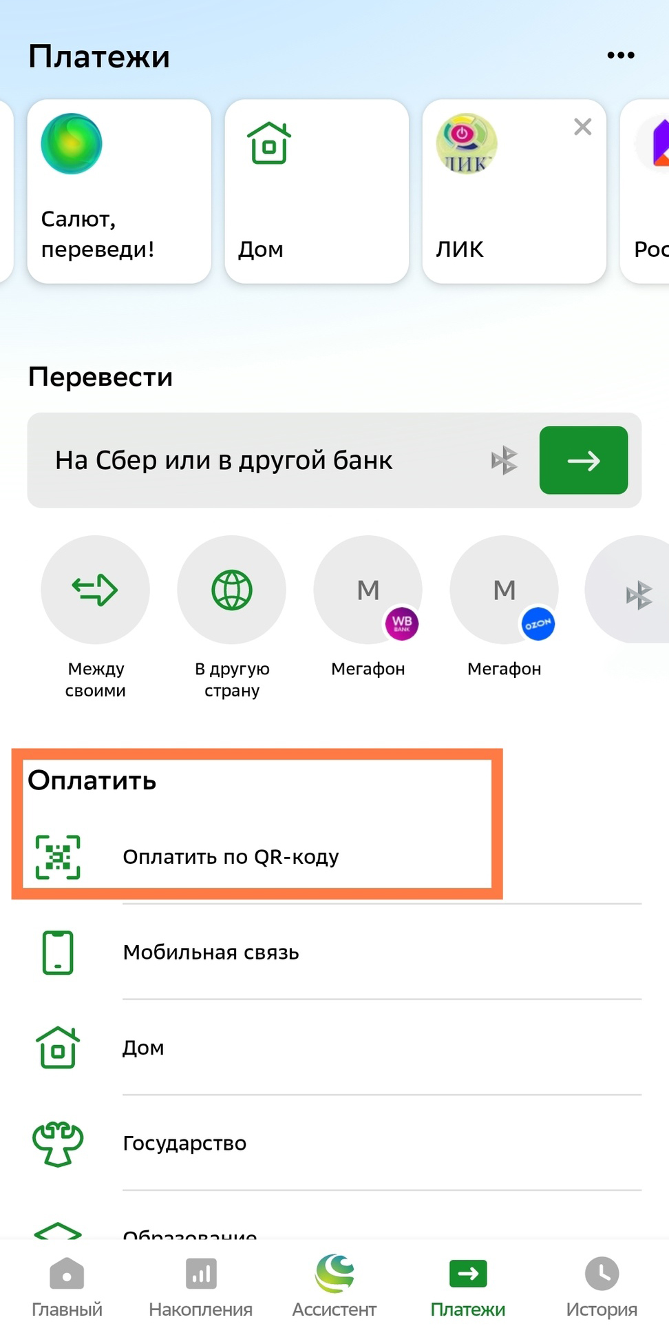 - Перейдите во вкладку «Платежи и переводы».