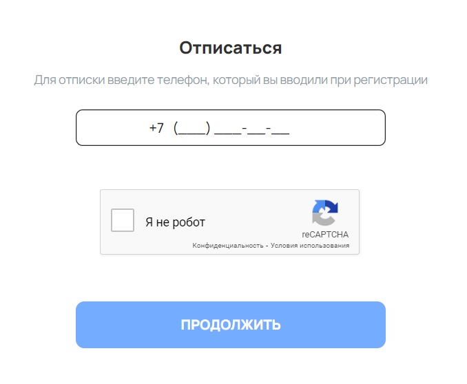 После этого подтвердите капчу и нажмите «Продолжить». На телефон придет смс с одноразовым кодом. Введите его для подтверждения деактивации подписки. После этого на экране должно появиться оповещение, что подписку отменили.