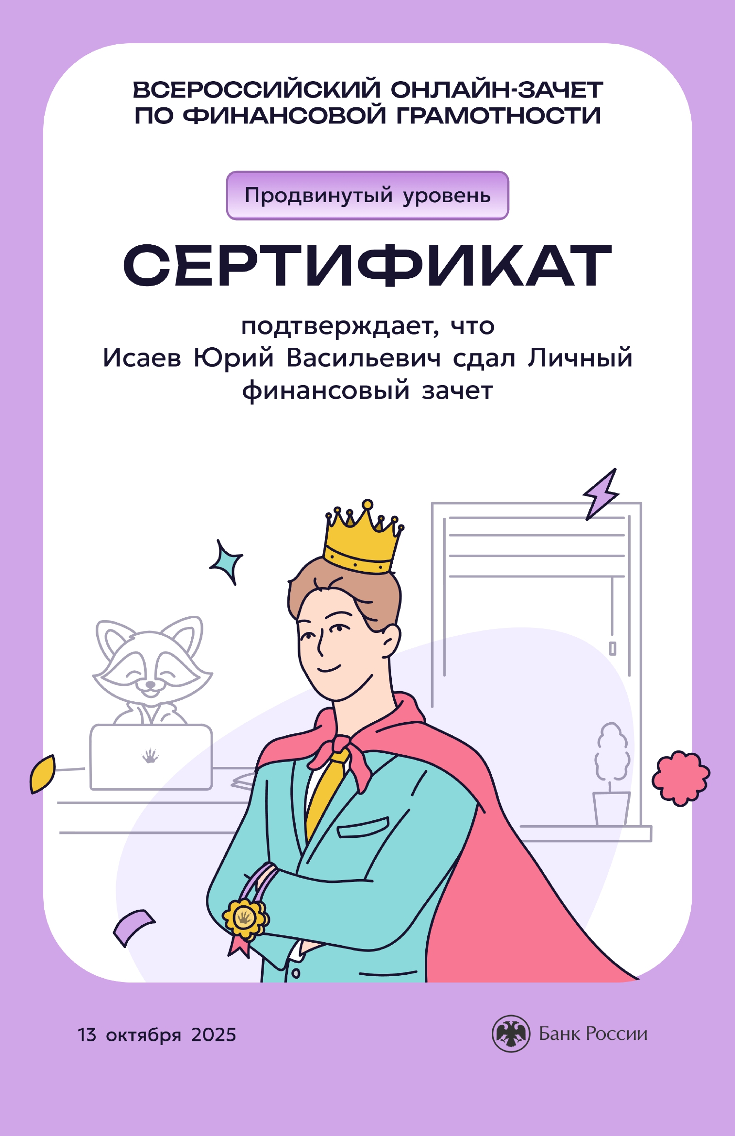 - 2024. Банк России. Всероссийский онлайн-зачет по финансовой грамотности. Личный финансовый зачет →