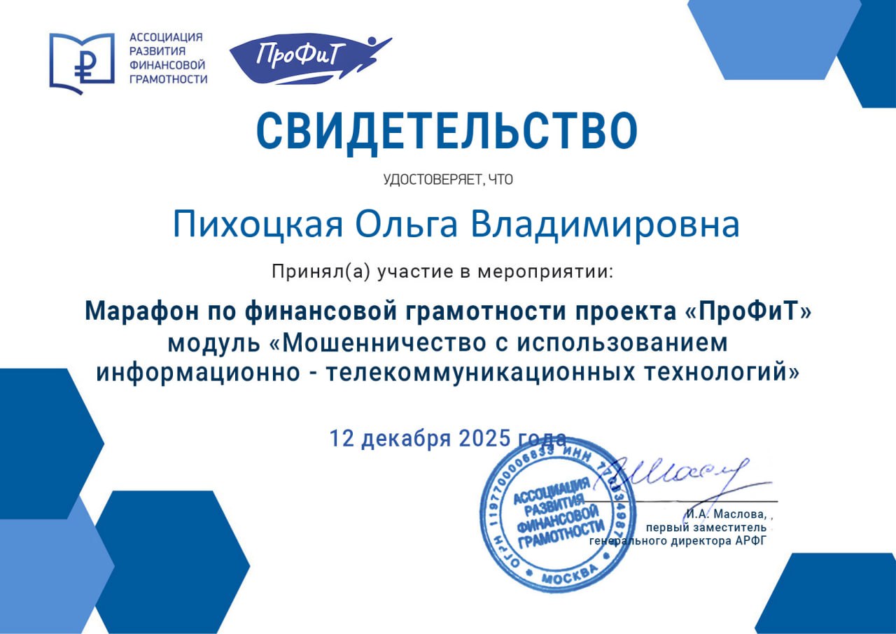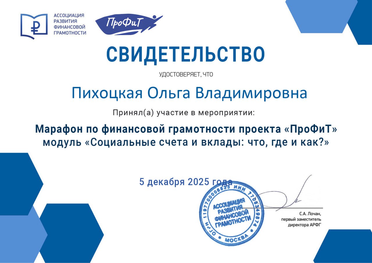 - 2025. АРФГ. Марафон по финансовой грамотности проекта «ПроФиТ» модуль «Финансовое воспитание детей и подростков» →