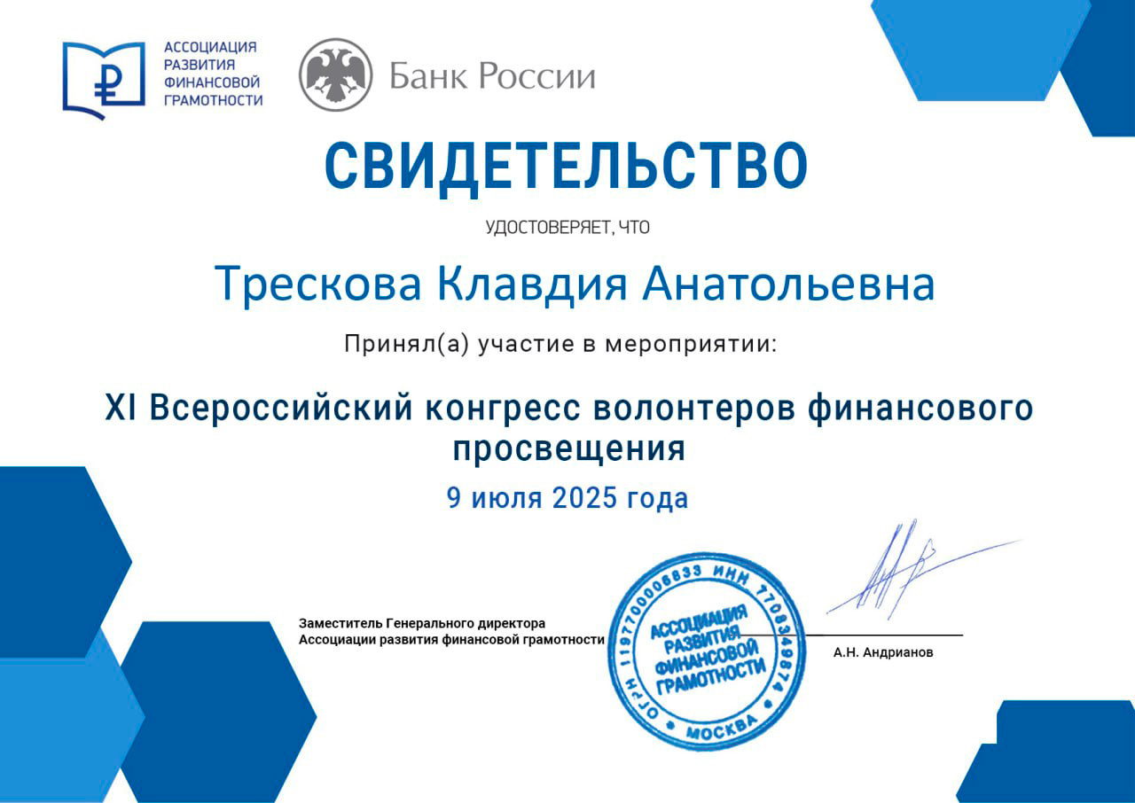 - 2025. Ассоциация развития финансовой грамотности. XI Всероссийский конгресс волонтеров финансового просвещения →