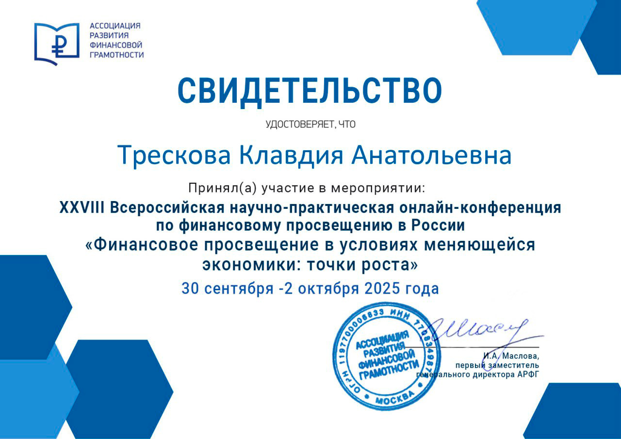 - 2023. Ассоциация развития финансовой грамотности. Повышение квалификации →